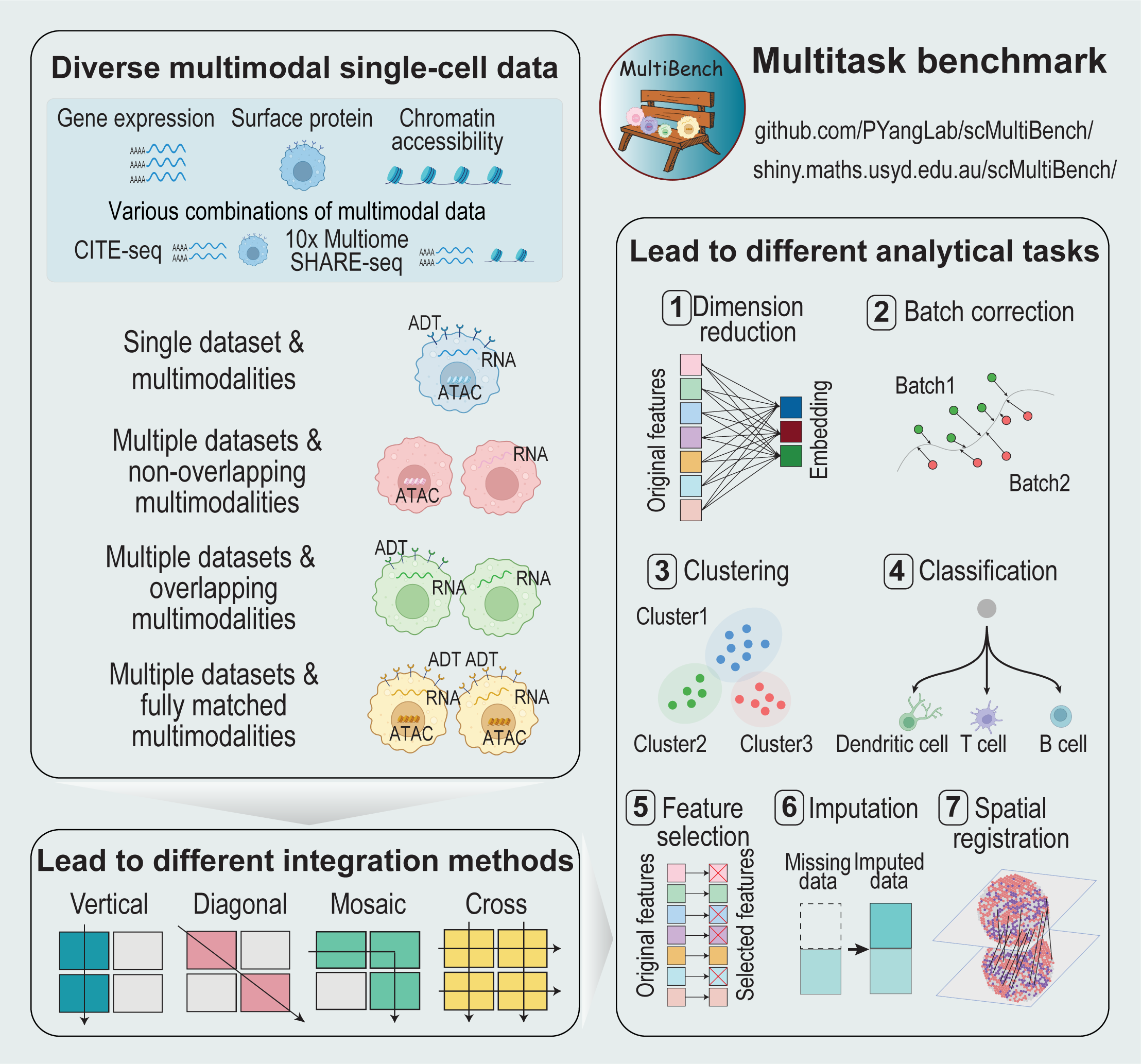 95. Liu, C., Huang, H. & Yang, P.† (2023) Multi-task learning from multimodal single-cell omics with Matilda. Nucleic Acids Research, 51(8), e45. [Full Text] [Repo and tutorial]